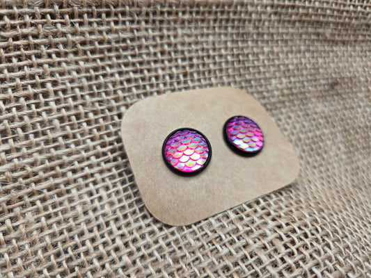 Magenta Mermaid Scale Stud on Black