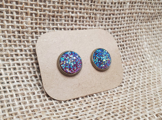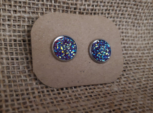 Iridescent Stud on Silver - 12mm