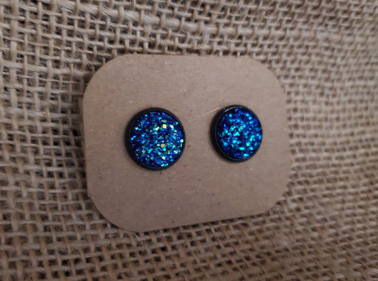 Emerald Blue Stud on Black - 12mm
