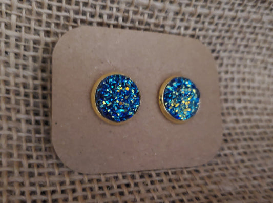 Emerald Blue Stud on Gold - 12mm
