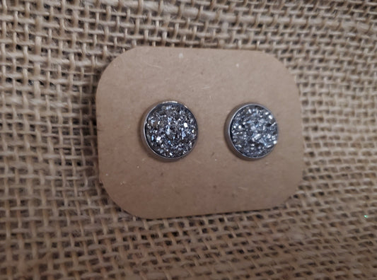 Silver Ice Stud on Silver - 12mm