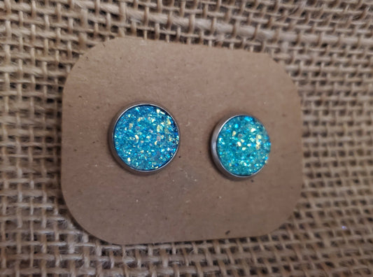 Aqua Stud on Silver - 12mm